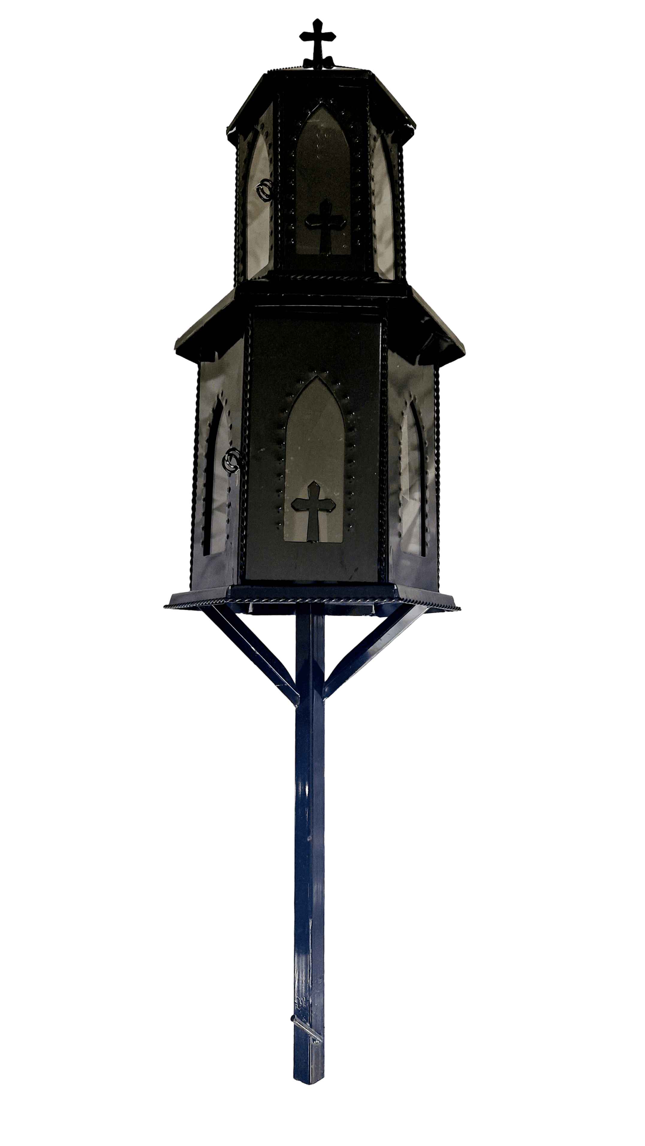 Felinarul model F adaugă un plus de solemnitate și eleganță locului de veci, fiind o soluție practică și rafinată pentru iluminarea cimitirului.